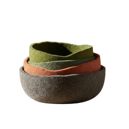 Organize your home with the organic beauty of our Nesting Felt Bowls. We hand-craft each piece using 100% sustainable sheep’s wool and the ancient wet-felting technique. Because the fibers are so densely packed, these bowls hold their sculptural shape while remaining soft to the touch. Use them to hold keys, jewelry, or even your favorite craft supplies.
